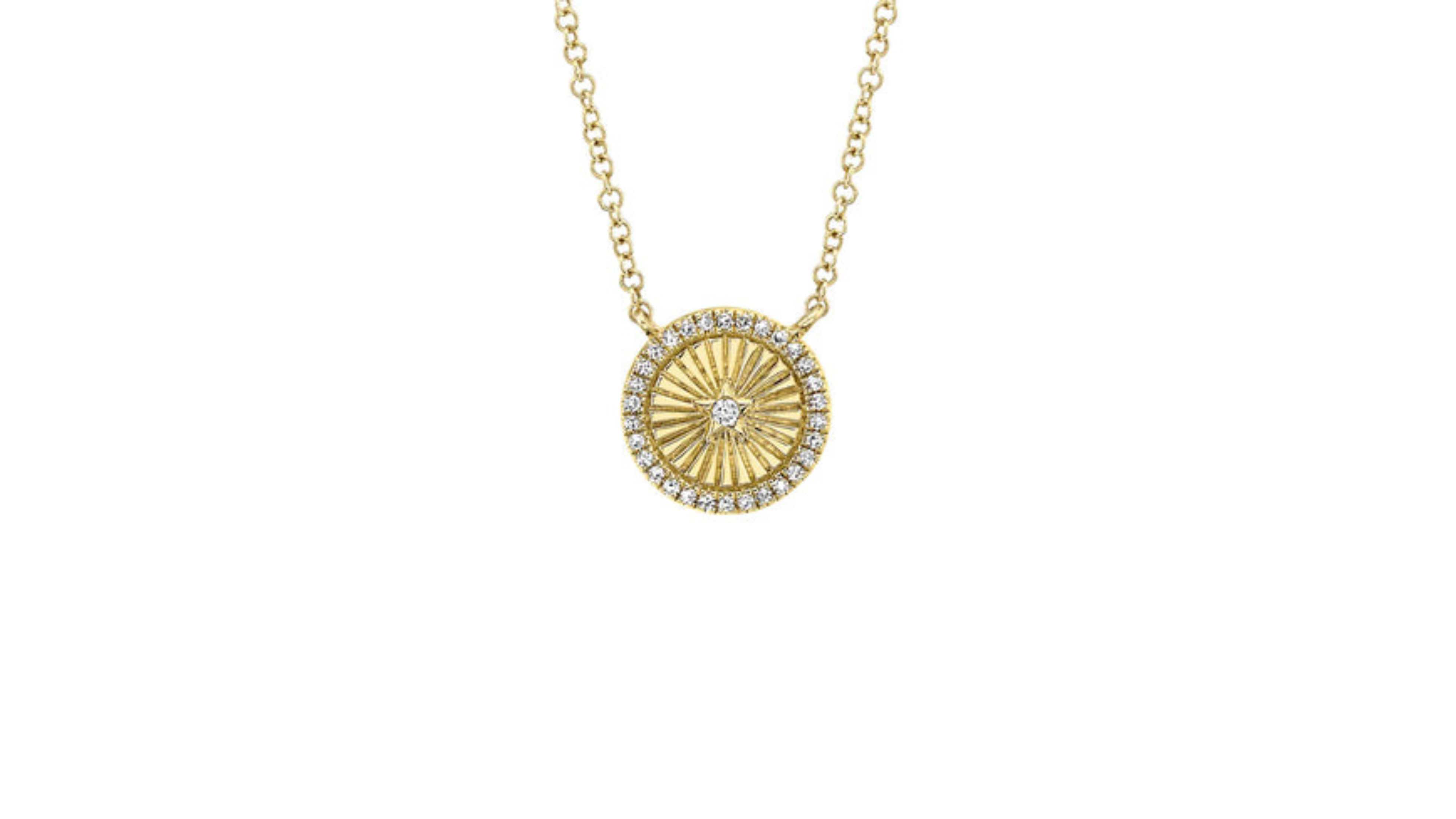 If yellow gold is your bridesmaid's go-to, this yellow gold star circle necklace would be perfect for them! A .08ctw diamond shines bright in the center, adding a touch of sparkle.