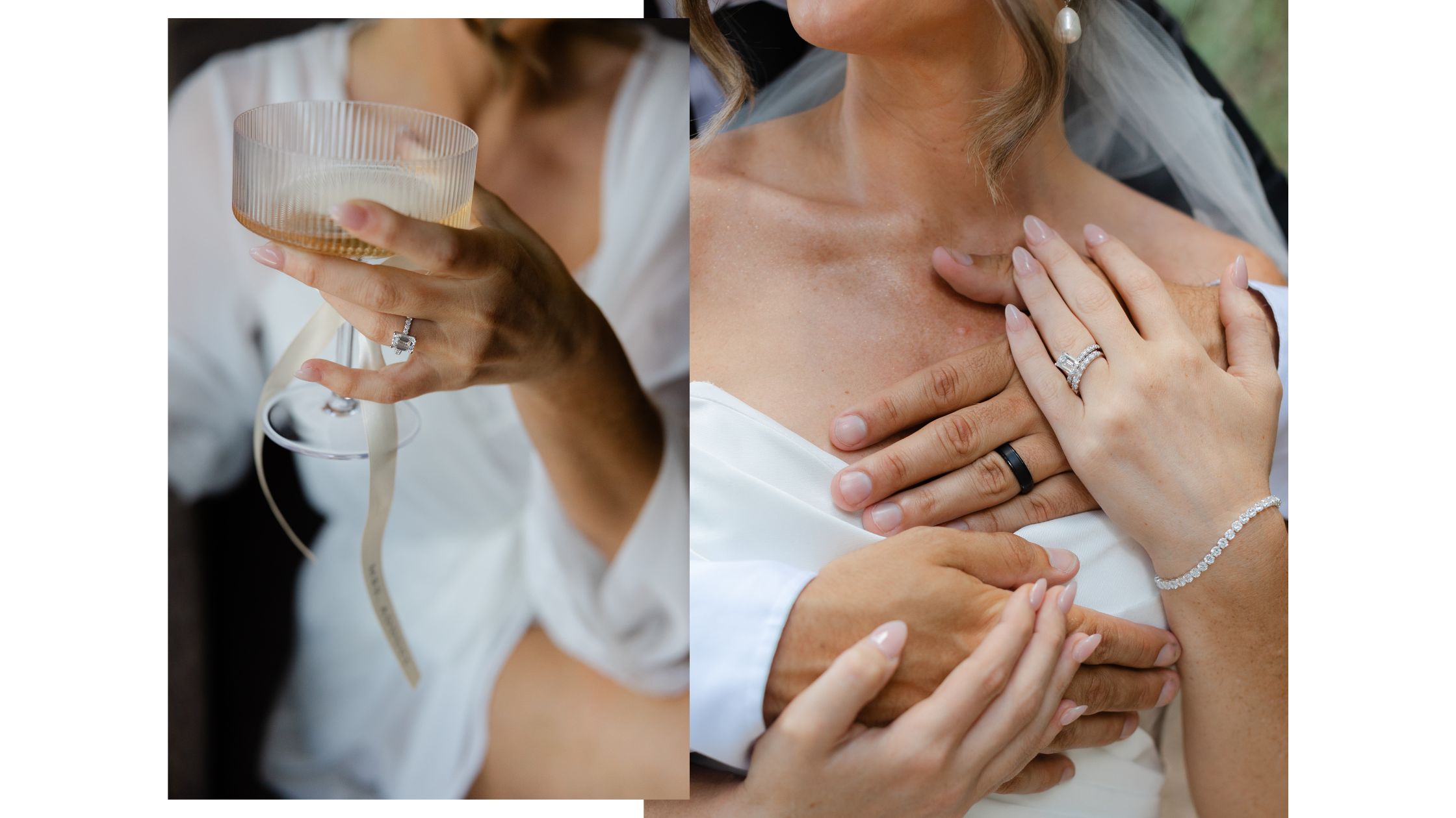 "Shopping for my engagement ring and wedding band was such a wonderful experience, all thanks to Donna. She was so patient, knowledgeable, and made sure I felt confident in my decision. My emerald-cut diamond engagement ring with a white gold diamond band is absolutely stunning, and my white gold prong diamond wedding band complements it perfectly." - Kaitlyn